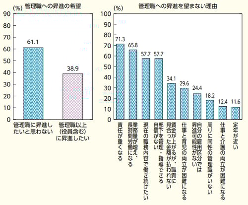 2018年の厚生労働省の統計によると、役職に就いていない職員や係長・主任級で「管理職以上への昇進を希望する」割合は