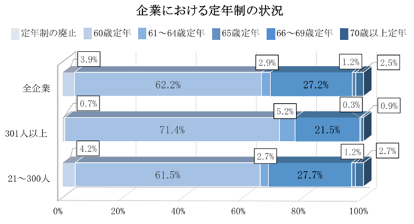 定年制を廃止している企業を含め、61歳以上に設定している企業は、実に全体の約4割を占め、多くの企業が、65歳までの雇用確保完全義務化に向けて、従来の再雇用制度を見直し、より抜本的な「定年延長」へ踏み切る企業が増えていることがわかります。