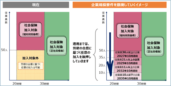 現在は「従業員数51人以上」の企業に勤務する短時間労働者が対象ですが、段階的に撤廃されます。