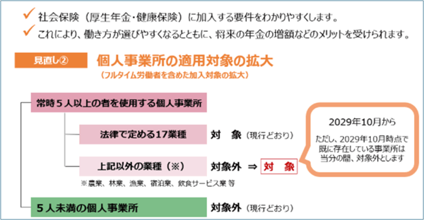 これにより、働く企業の規模にかかわらず、社会保険に加入する小規模事業所で働く人も社会保険の保障を受けられるようになります。